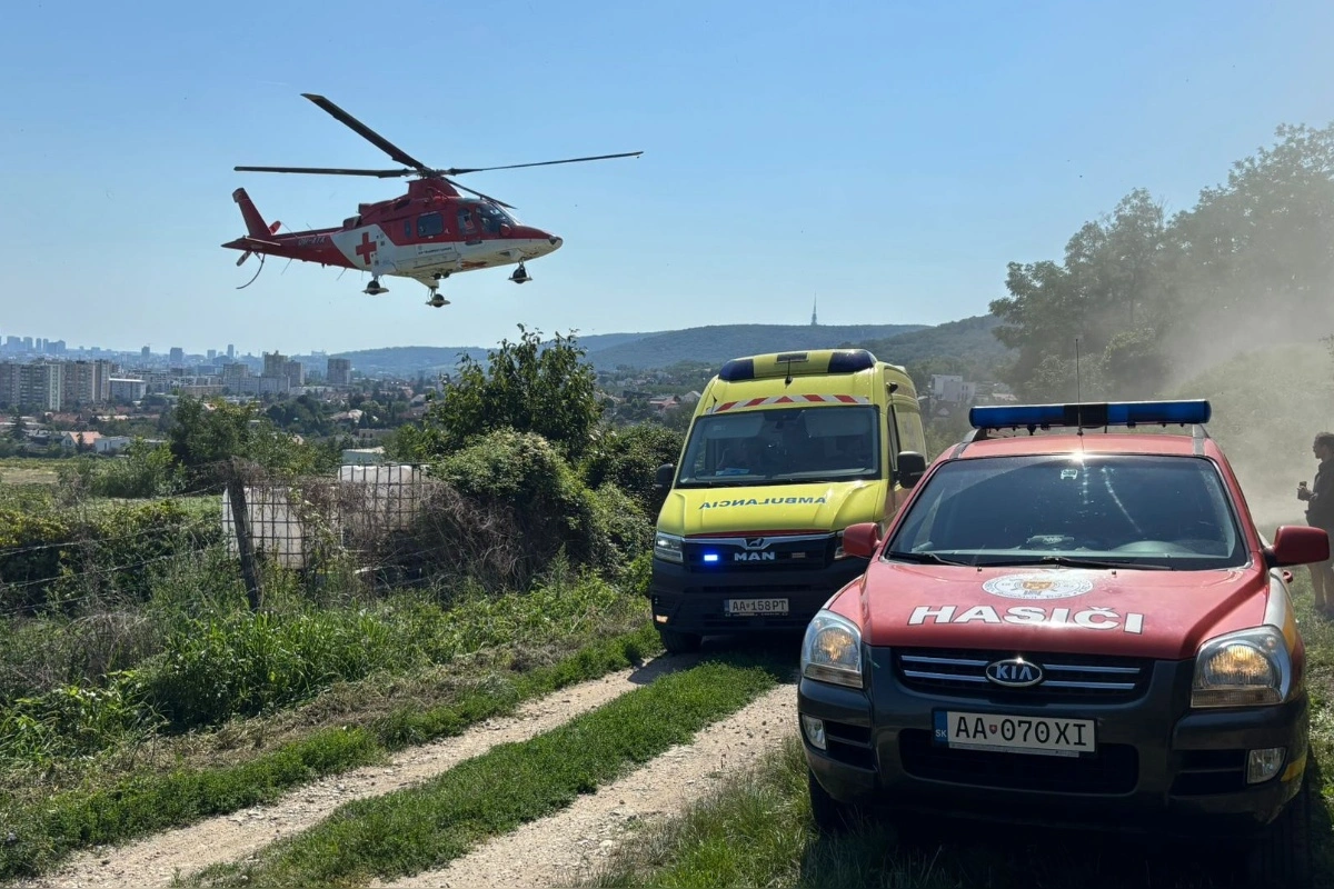 Vážny incident vo vinohradoch. V Rači zasahoval vrtuľník, jednu osobu zranila motorová píla